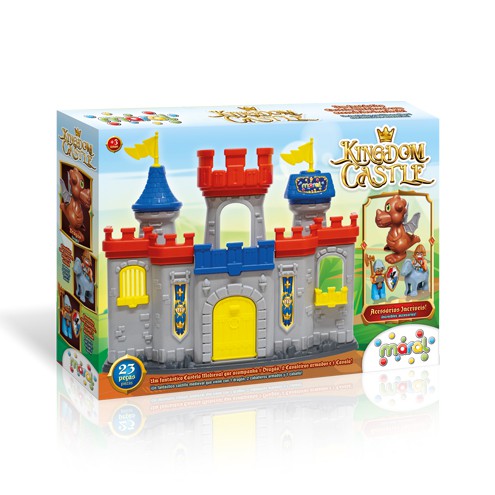 Com o Castelo do Reino se imagina e se vive as maiores aventuras. Completo de tudo com suas vinte e três peças, ele abre o portão, tem cavaleiros, e até um Dragão!