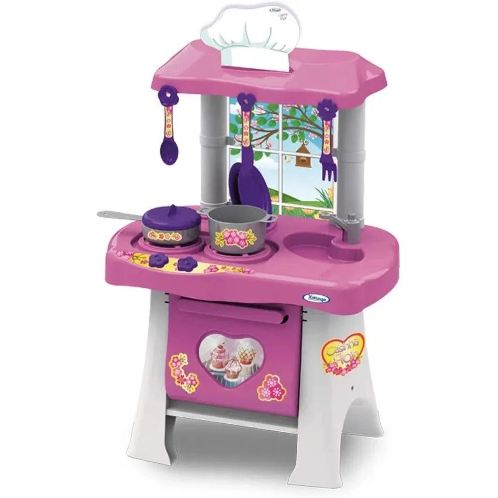 A Cozinha Pop Casinha Flor é composta de um design diferenciado. Os adesivos completam o visual e enriquecem a brincadeira. Os acessórios são personalizados, estimulando a imaginação e auxiliando as crianças no seu desenvolvimento.