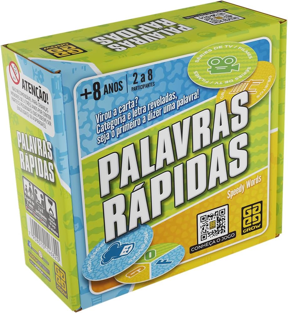 O jogo é simples, envolvente e perfeito para jogar com amigos ou em família. Quem responder primeiro fica com a carta, e no final, quem tiver mais cartas vence. Prepare-se para partidas rápidas, cheias de risadas e desafios inesperados. É o tipo de jogo que você começa e não quer mais parar. Recomendado para crianças a partir de 8 anos, Palavras Rápidas pode ser jogado por até 8 participantes, com partidas de aproximadamente 20 minutos. Ideal para animar encontros, viagens ou tardes em casa. Um jogo que estimula o raciocínio rápido e garante muita diversão para todas as idades.
