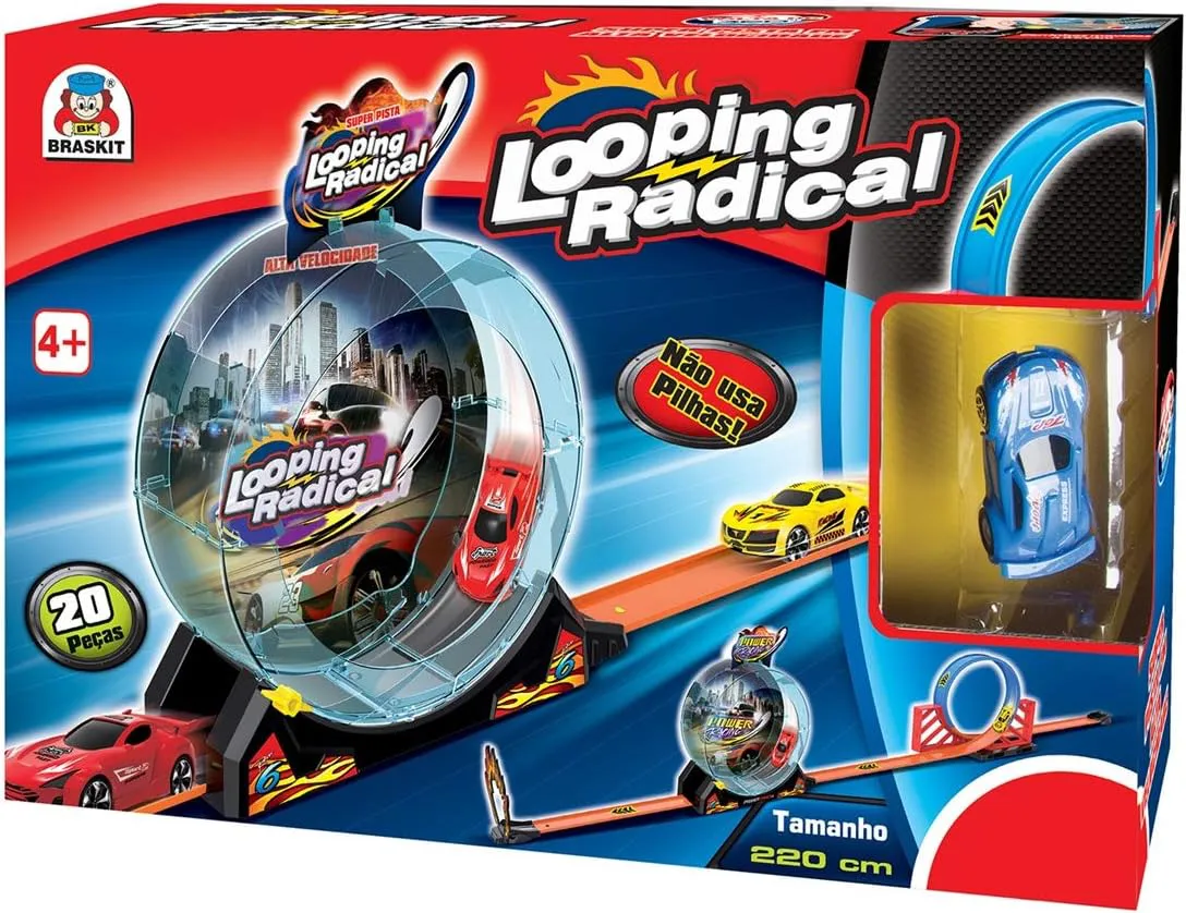 O Looping Radical da Braskit, é fabricado em plástico de alta qualidade para garantir durabilidade e resistência durante seu uso. Muito divertido, essa incrível pista conta com 20 peças para montar e lançar seu veículo com toda a velocidade pelo looping 360º, dando uma volta completa para sair com todo estilo e passar pelo looping radical, que lhe fará dar várias voltas em alta velocidade.