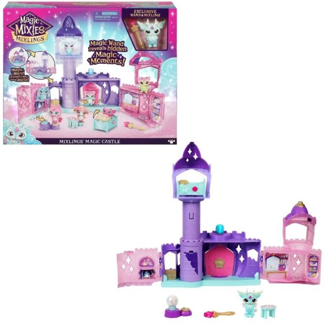 Viaje para uma terra de magia e feitiços com os Mixlings, uma nova e fofa raça de Magic Mixies que têm seu próprio Magic Castle! Use sua Varinha Mágica para dar vida ao Castelo Mágico de seus Mixlings! Toque sua varinha na Gema acima da porta para ver o Castelo se expandir para fora e para cima com as paredes se movendo e a torre se erguendo sozinha! A magia não para por aí! Use sua varinha mágica para ativar a entrada secreta e se surpreenda quando seus Mixlings desaparecerem magicamente no castelo, você pode então configurar a Mesa e o Banco para o seu Mixie sentar e fazer mais feitiços. Então, depois de um dia inteiro de magia, é a hora de dormir. Coloque-os em sua cama e use sua varinha mágica para tocar a gema ao lado da cama e se surpreenda enquanto as cobertas cobrem magicamente o Mixling! O Castelo Mágico dos Mixlings inclui um Mixling exclusivo - Magique, cujo poder mágico é o poder Flier. Use sua varinha para fazer suas belas asas aparecerem! As brincadeiras vão ficar muito mais divertidas com Magic Mixies Mixlings Playset!