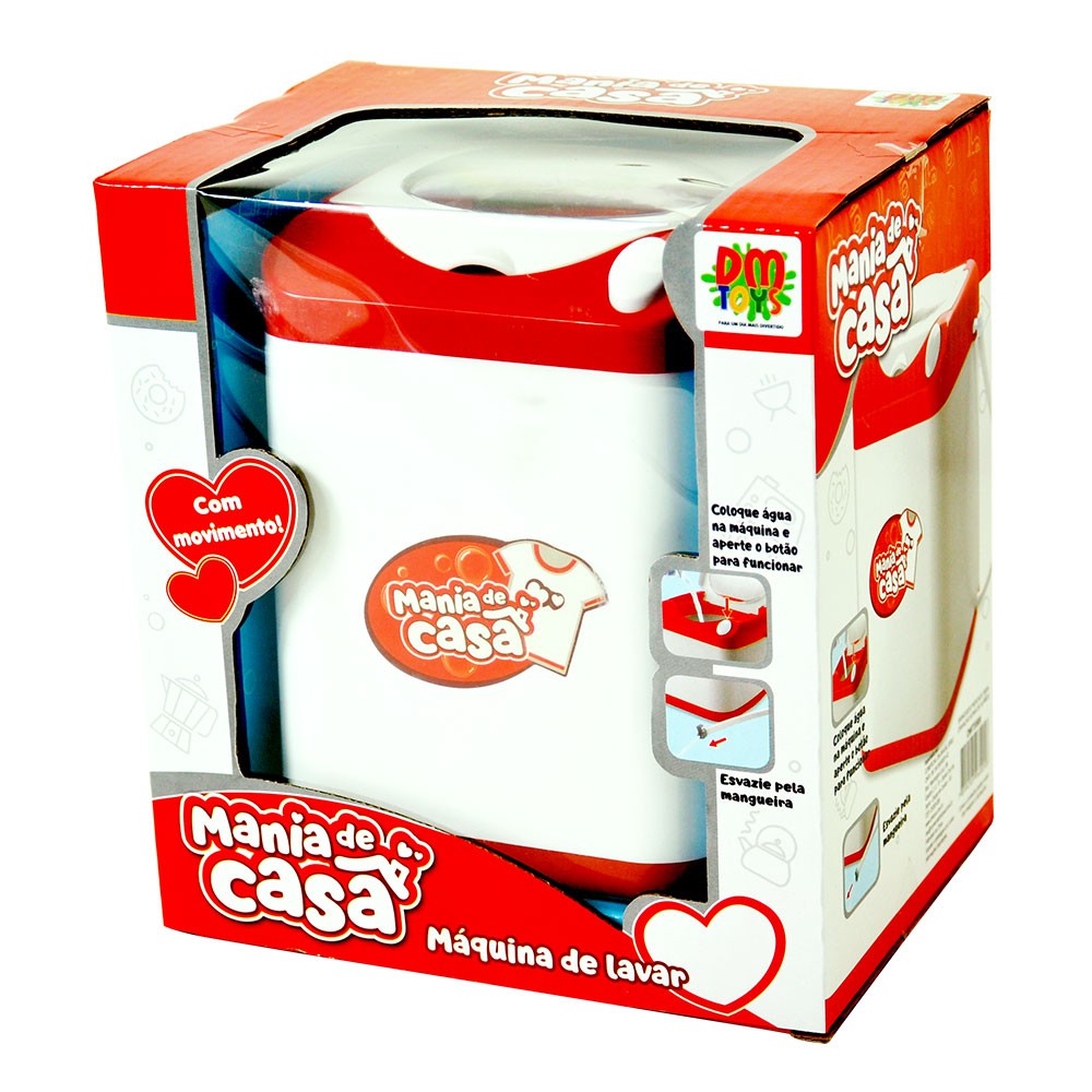 Brincar de casinha vai ficar ainda mais divertido com a linha Mania de Casa! Adicione água na máquina de lavar e aperte o botão para o conteúdo girar! Ao final na brincadeira, esvazie a máquina utilizando a mangueirinha.