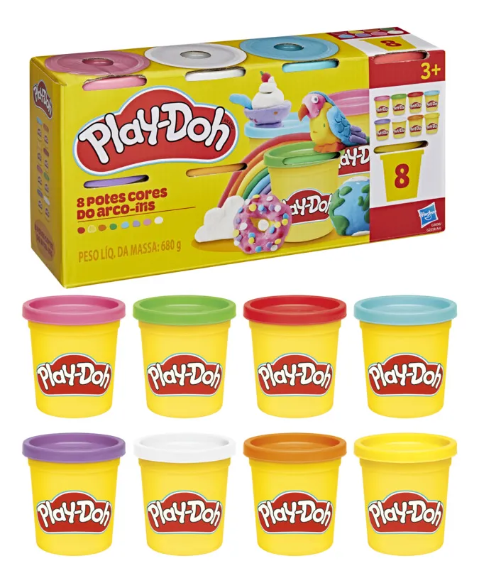 8 CORES DE PLAY-DOH: Com 8 potes de 56 g de massa de modelar Play-Doh, este kit é uma ótima opção para completar o estoque de Play-Doh; DAR FORMA À IMAGINAÇÃO: Desde construir seu próprio arco-íris até misturar suas próprias cores, crianças a partir dos 3 anos podem fazer qualquer coisa que possam imaginar!; POTES DE 56 G: Este kit inclui potes de 56 g (contém trigo); ATIVIDADES DIVERTIDAS PARA CRIANÇAS: É perfeito para atividades em sala de aula, solitárias e com amigos. É um ótimo presente para crianças que gostam de brinquedos criativos, artes e artesanato;