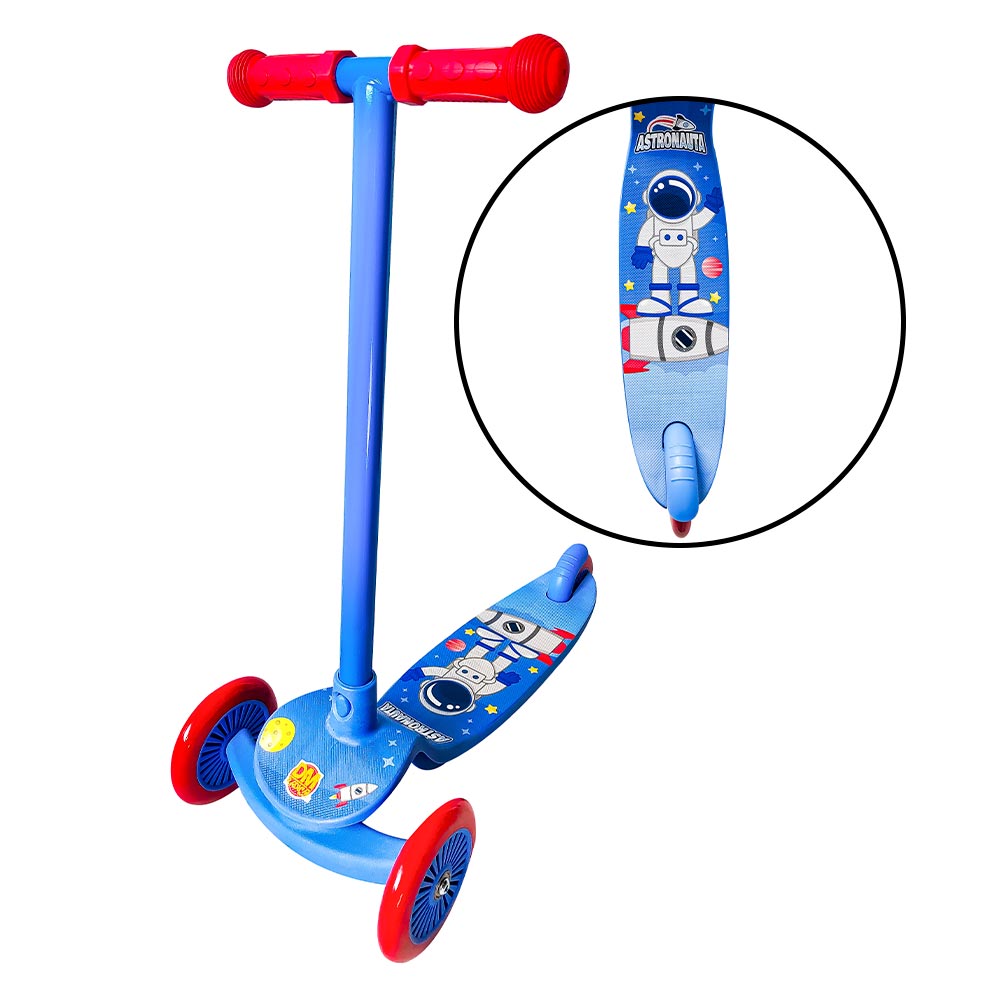 O Patinete Slim Astronauta é super legal! Com estampa exclusiva DM RADICAL, possui duas rodas dianteiras que dão mais facilidade na hora de fazer curvas. Com sistema lean-to-steer, é só inclinar o guidão para o patinete virar.