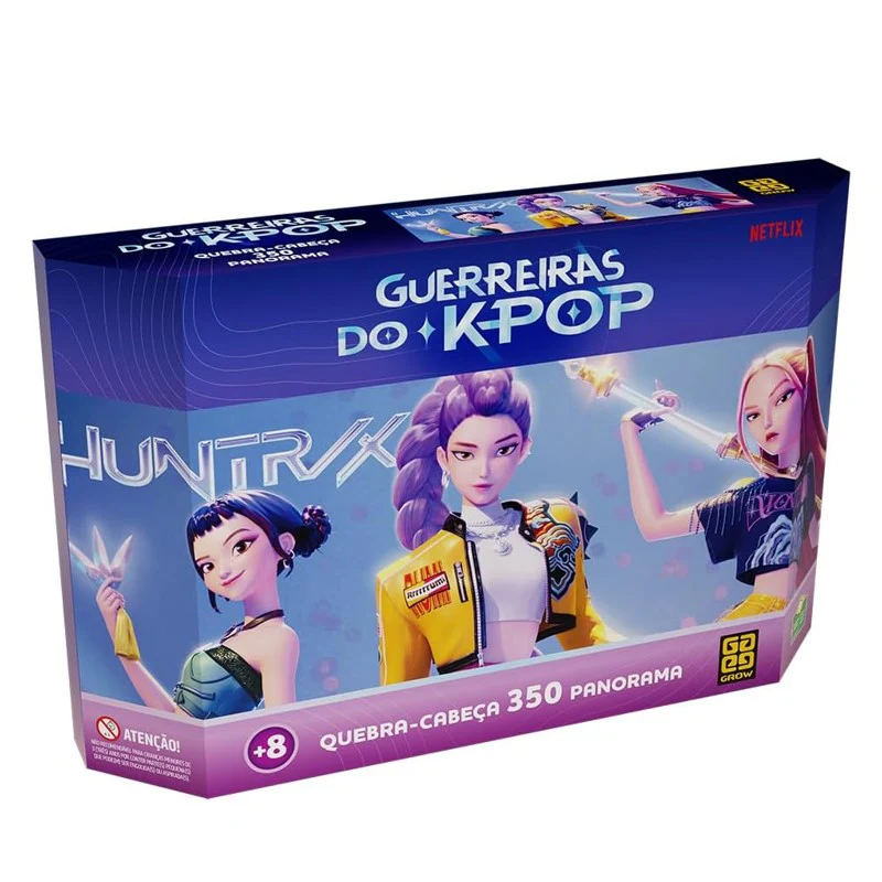 Agora você pode se divertir e mergulhar no universo das Guerreiras do K-Pop com os quebra-cabeças Grow que trazem imagens incríveis desse fenômeno que conquistou fãs no mundo inteiro. Diretamente da animação da Netflix, o grupo HUNTR/X, formado por Rumi, Mira e Zoey, vive uma vida dupla: no palco, são estrelas do K-pop; fora dele, caçadoras de demônios. Unidas pela música e pela coragem, elas criam o Hanmoon, uma poderosa barreira mágica que protege o mundo das forças do mal. Um desafio épico para quem ama K-pop, histórias marcantes e produtos que vão além da diversão.