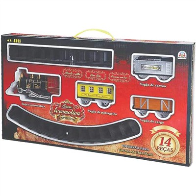 Super Locomotiva Expresso Movido a pilha, acende o farol e emite som de locomotiva quando está em movimento. Estimula a coordenação motora, imaginação e interação entre pais e filhos.